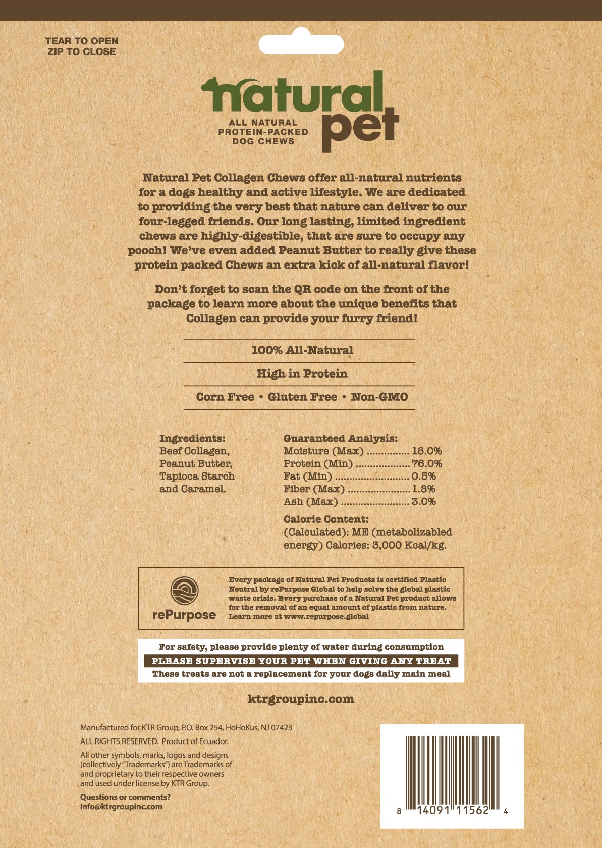 Every package of Natural Pet Products is certified Plastic Neutral by rePurpose Global to help solve the global plastic waste crisis. Every purchase of a Natural Pet product allows for the removal of an equal amount of plastic from nature. Learn more at repurpose.global